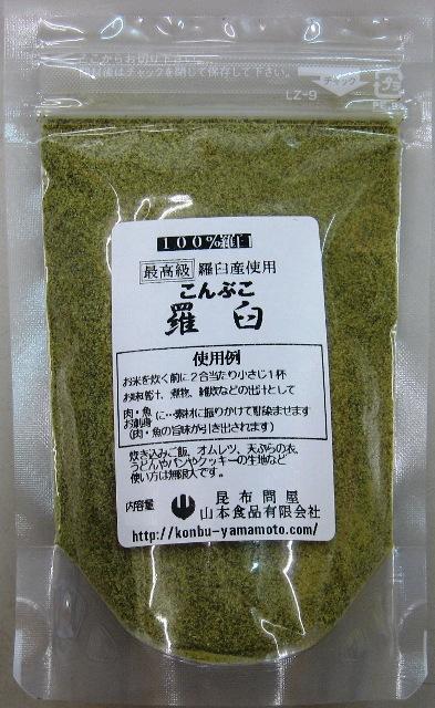 | 100%羅臼産昆布使用 商品名:こんぶこ羅臼 内容量:50g,100g(徳用) 原材料名:昆布(羅臼産) 賞味期限:1年 用途: ・ごはんを炊く前に2合当たり小さじ1杯 ・出汁(お味噌汁、煮物、雑炊などに) ・魚肉料理の下ごしらえ (こんぶこを振りかけて馴染ませます) ・その他、炊き込みご飯、オムレツ、 天ぷらの衣(色付け)、うどんやパン、 クッキーの生地に 使い方は無限大です。 |